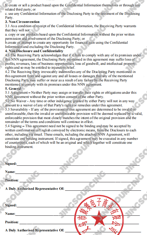 JingSourcing, your trustworthy partner, keeps your info secret as required by NNN.